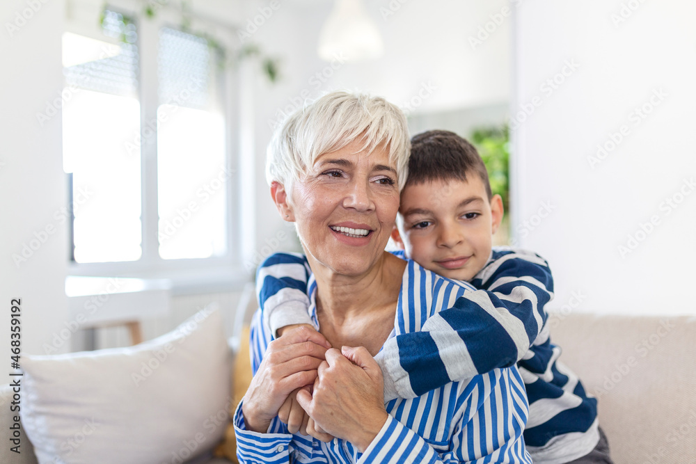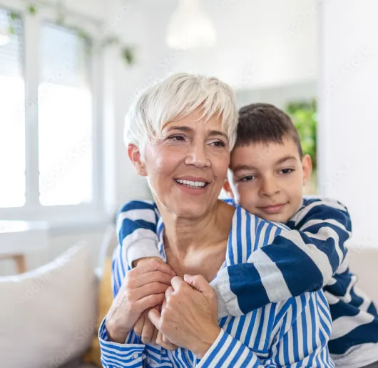 Boy with arms around grandma